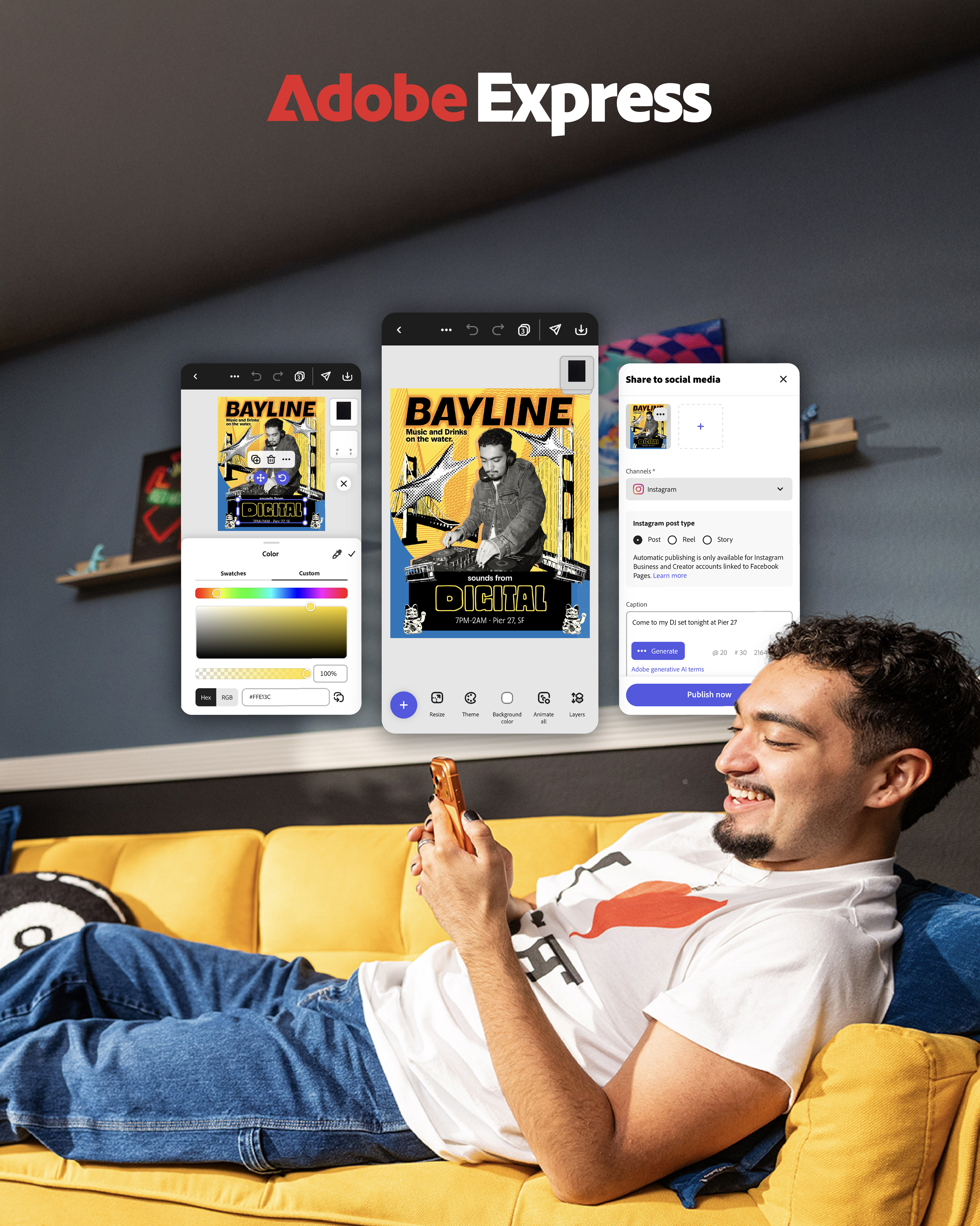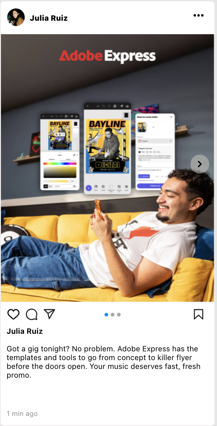 Got a gig tonight? No problem. Adobe Express has the templates and tools to go from concept to killer flyer before the doors open. Your music deserves fast, fresh promo.